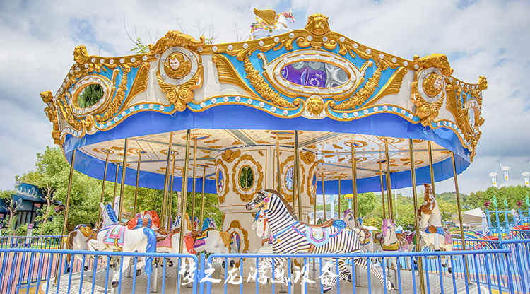其中就是豪華旋轉木馬,豪華旋轉木馬有彩色的錐形頂棚,還有五彩繽紛的玻璃鋼裝飾,顯得豪華氣派。
