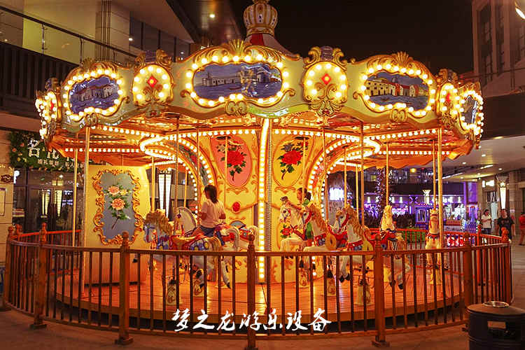 豪華轉馬能夠經久不衰,肯定有它獨特的魅力,首先外觀好看,燈光漂亮,給人夢幻的感覺